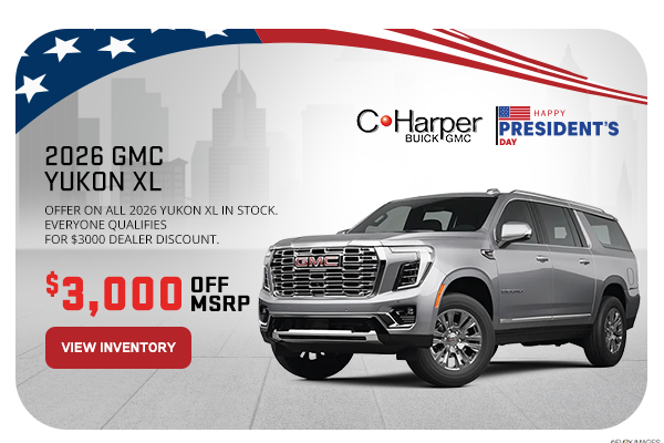 Offer on all 2026 Yukon XL in Stock. Everyone qualifies for $3000 dealer discount. Plus tax,title, and fees. Offer good till 03-31/26