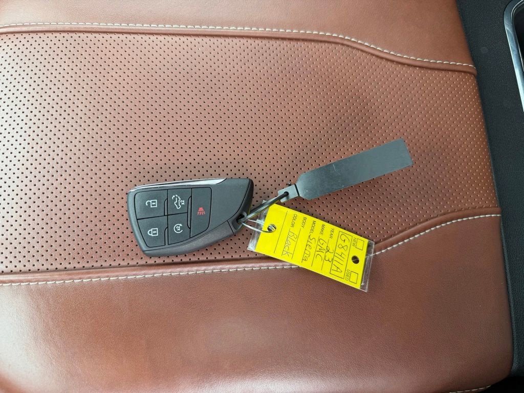 C. Harper Prime Certified, 10-Speed Automatic, 4WD, Alpine Umber Leather, 12 Speakers, 120-Volt Bed Mounted Power Outlet, 120-Volt Instrument Panel Power Outlet, 16-Way Power Driver Seat Adjuster w/Lumbar, 16-Way Power Passenger Seat Adjuster w/Lumbar, 170 Amp Alternator, 2 Charge/Data USB Ports Inside Center Console, 2 Type-C Charge-Only Rear USB Ports, 2 USB Ports, 3.23 Rear Axle Ratio, 4-Wheel Disc Brakes, ABS brakes, Adaptive suspension, Air Conditioning, Alloy wheels, AM/FM radio, Apple CarPlay/Android Auto, Auto High-beam Headlights, Auto-dimming door mirrors, Auto-dimming Rear-View mirror, Auto-Locking Rear Differential, Automatic Emergency Braking, Automatic temperature control, Bed View Camera, Bose Premium Series w/12-Speaker System, Brake assist, Buckle to Drive, Bumpers: body-color, Chrome Recovery Hooks, Color-Keyed Carpeting Floor Covering, Compass, Deep-Tinted Glass, Delay-off headlights, Denali Premium Suspension w/Adaptive Ride Control, Driver door bin, Driver Memory, Driver vanity mirror, Dual front impact airbags, Dual front side impact airbags, Electric Rear-Window Defogger, Electrical Steering Column Lock, Electronic Stability Control, Emergency communication system: OnStar and GMC connected services capable, Enhanced Automatic Emergency Braking, Floor-Mounted Center Console, Following Distance Indicator, Forward Collision Alert, Front & Rear Black Molded Splash Guards (LPO), Front anti-roll bar, Front Bucket Seats, Front Center Armrest, Front dual zone A/C, Front fog lights, Front License Plate Kit, Front Pedestrian Braking, Front Rainsensing Wipers, Front reading lights, Front wheel independent suspension, Full Grain Leather Seat Trim, Fully automatic headlights, Garage door transmitter, Genuine wood console insert, Genuine wood dashboard insert, Genuine wood door panel insert, GMC Connected Access Capable, HD Surround Vision, Heads-Up Display, Heated 2nd Row Outboard Seats, Heated door mirrors, Heated Driver & Front Outboard Passenger Seating, Heated front seats, Heated rear seats, Heated steering wheel, Heavy-Duty Air Filter, Hill Descent Control, Hitch Guidance, Hitch Guidance w/Hitch View, Illuminated entry, In-Vehicle Trailering App, Integrated Trailer Brake Controller, IntelliBeam Automatic High Beam On/Off, Keyless Open & Start, Lane Keep Assist w/Lane Departure Warning, LED Cargo Area Lighting, Low tire pressure warning, Memory seat, Multicolor 15 Diagonal Head-Up Display, MultiPro Audio System by Kicker (LPO), Navigation System, Not Equipped w/Steering Column Lock, Occupant sensing airbag, OnStar & GMC Connected Services Capable, Outside temperature display, Overhead airbag, Overhead console, Panic alarm, Passenger door bin, Passenger vanity mirror, Perimeter Lighting, Power Door Locks, Power door mirrors, Power driver seat, Power Front Passenger Windows w/Express Up/Down, Power Front Windows w/Driver Express Up/Down, Power moonroof, Power passenger seat, Power Rake & Telescoping Steering Column, Power Rear Windows w/Express Down, Power Sliding Rear Window w/Rear Defogger, Power steering, Power Sunroof, Power windows, Preferred Equipment Group 5SB, Premium audio system: GMC Infotainment System, Push Button Start, Radio data system, Radio: Premium GMC Infotainment Audio System, Rain sensing wipers, Rear Cross Traffic Braking, Rear Pedestrian Detection, Rear reading lights